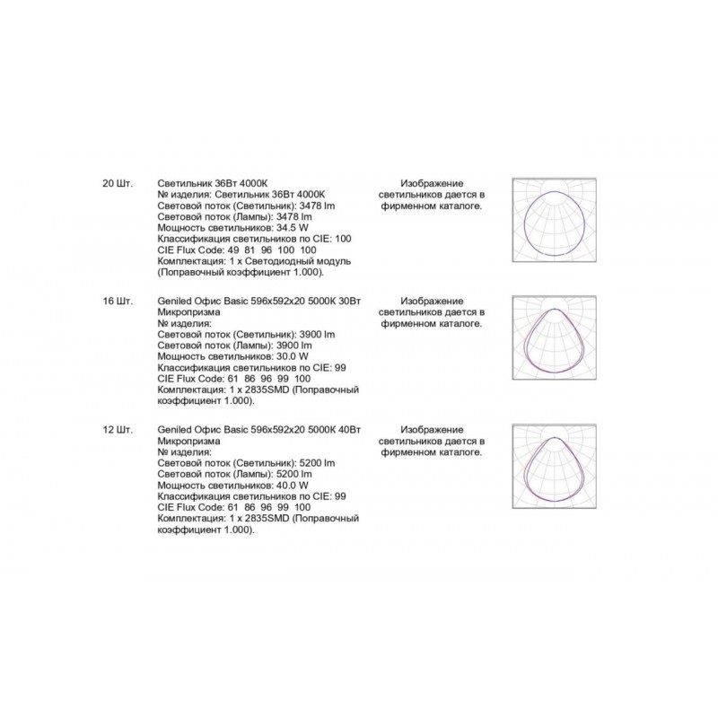 1. Офис Basic 596x592x20 5000К 30Вт Микропризма (16 шт.)
