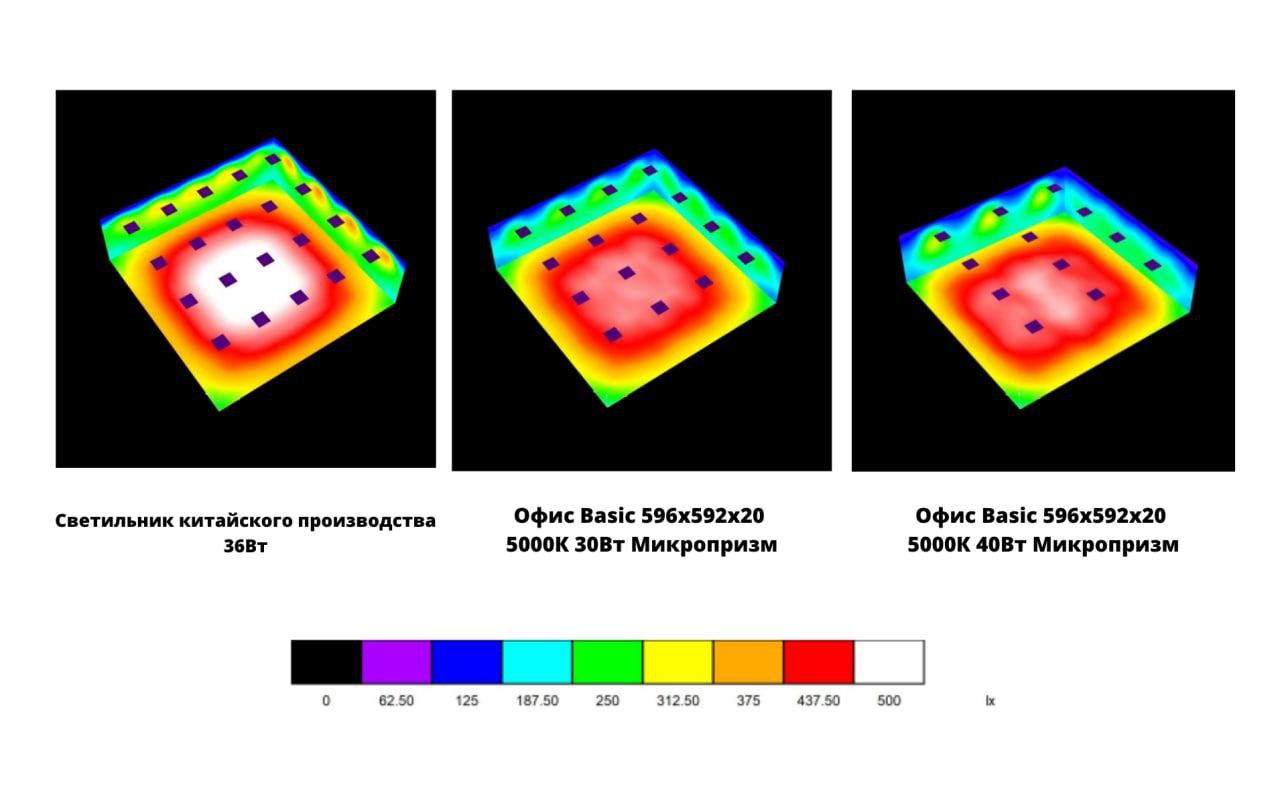 ❗️В результате при меньшем количестве светильников Офис Basic освещённость остается на высоком уровне.