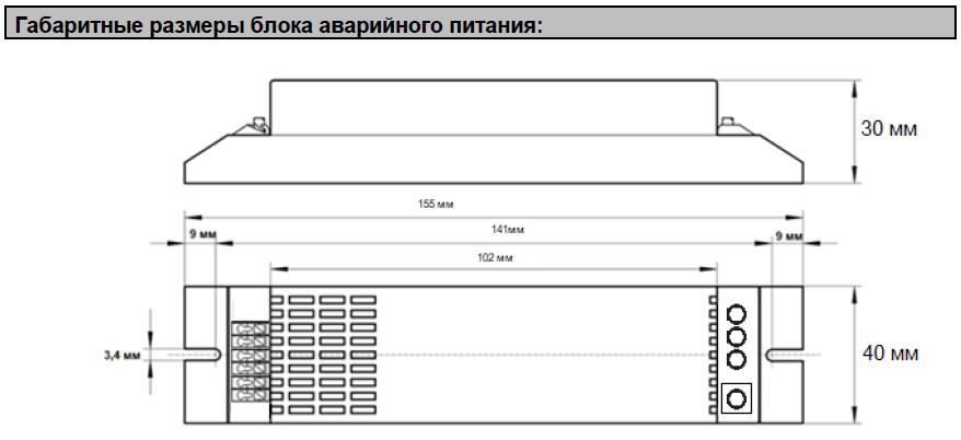 Габаритные размеры корпуса ДхШхВ 155 х 40 х 30 мм