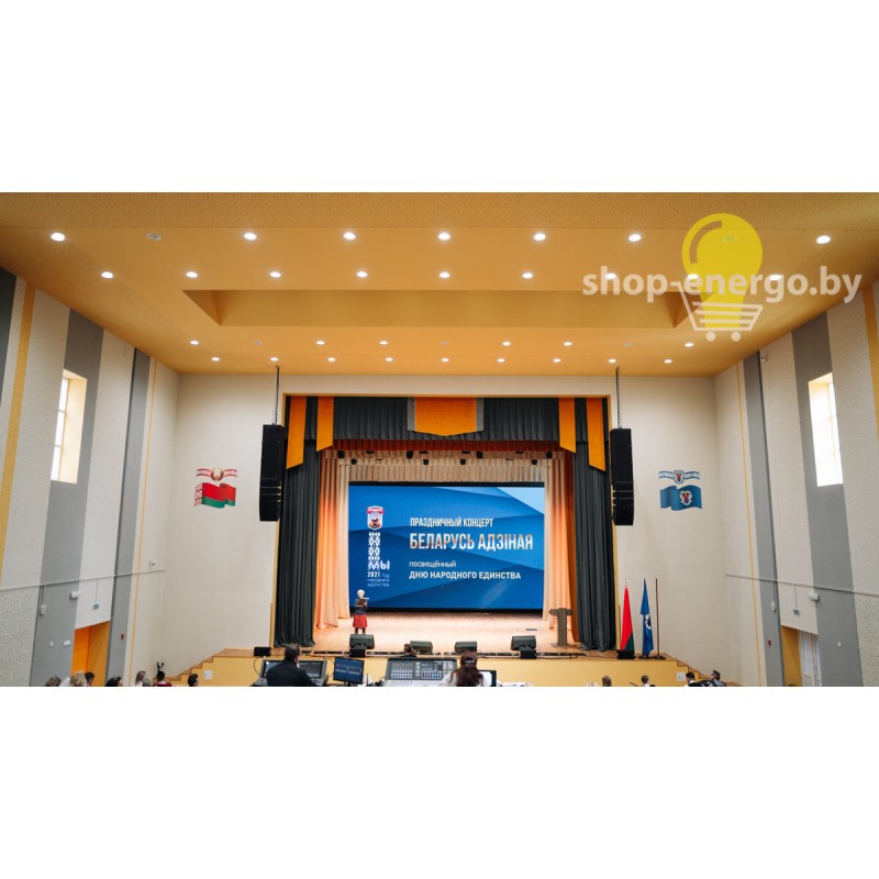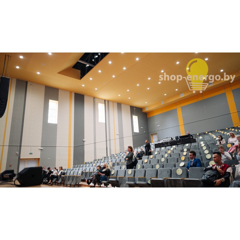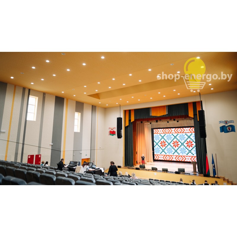 Проект: освещение зрительного зала в Центре дополнительного образования детей и молодёжи "Ранак", г. Минск. Использован светильник светодиодный geniled Сейлинг 40Вт 4500К: оптимальное решение для высоких потолков: зрительные залы, шоурумы, бизнес-центры. Лучшее соотношение цена/качество! Высота подвеса от 6м, освещенность замечательная.