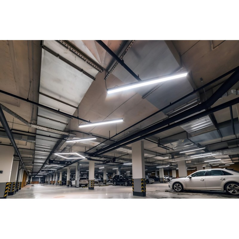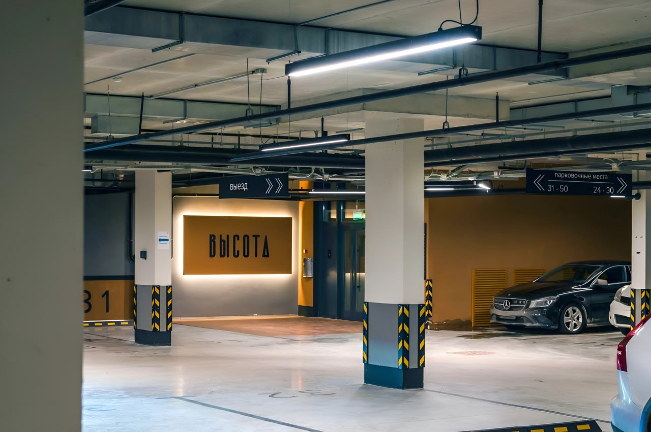 Задача: обеспечить яркое и равномерное освещение, а также удобную навигацию на территории подземного паркинга.