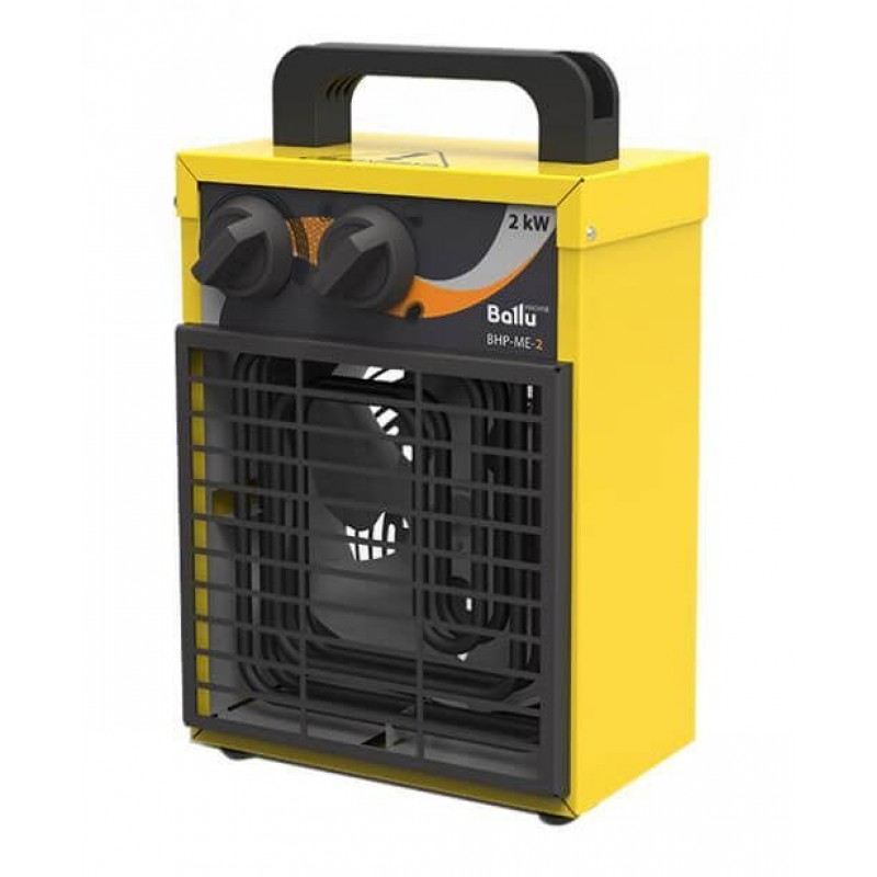 Может использоваться для обогрева производственных и служебных площадей, находящихся в процессе строительства, ремонта, восстановления или реставрации. Равномерный прогрев помещений обеспечивают ТЭНы из нержавеющей стали. Бесперебойное эффективное поступление тепла и предотвращение перегрева обеспечивает встроенный термостат тепловой электрической пушки BALLU BHP-ME-2. Мощность составляет 2 кВт. Питается от электросети с напряжением 220 В, функционирует в трех режимах: половинной и полной мощности и вентиляции.