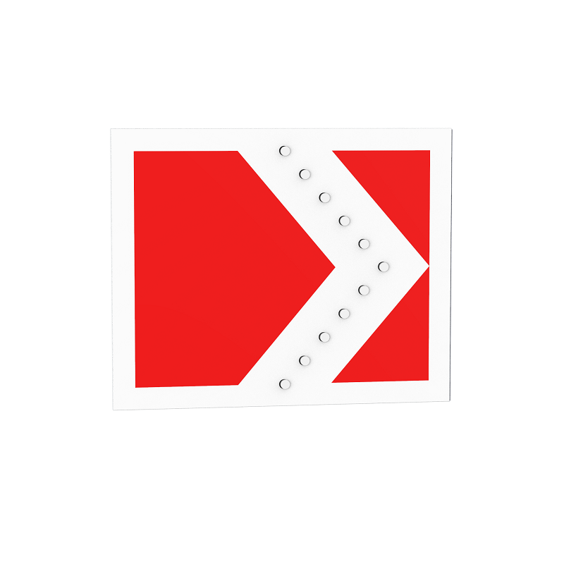 Источником света являются высококачественные светодиодные модули IP67, повторяющие основной символ знака. Конструкция собрана из герметичных светодиодных модулей с гарантированным сроком службы не менее 45000 часов. Импульсный режим работы позволяет заблаговременно привлечь внимание водителей ТС к опасному повороту. Так же знаки можно объединить в систему для создания последовательной световой волны (змейки), Маска знака выполнена с использованием световозвращающих материалов – пленок типов Б, В по ГОСТ 32945-2014.