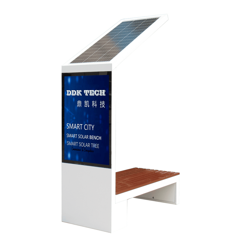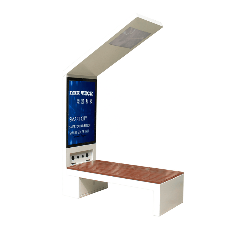 Умная парковая скамья DDK на солнечной батарее со встроенным рекламным LED-экраном. Автономное решение для благоустройства общественных пространств: объединяет зону отдыха, декоративную подсветку и рекламную поверхность в одном прочном металлическом корпусе.